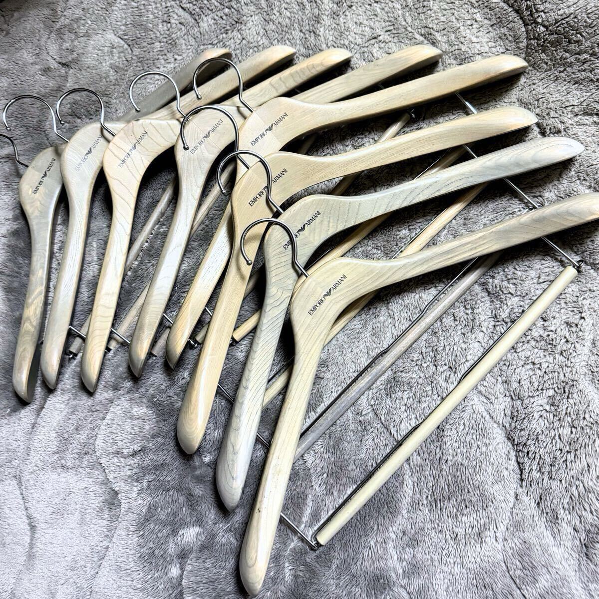 - 非売品 木製 8本セット EMPORIO ARMANI エンポリオ アルマーニ 純正ハンガー スーツハンガー パンツハンガー付 高級ハンガー