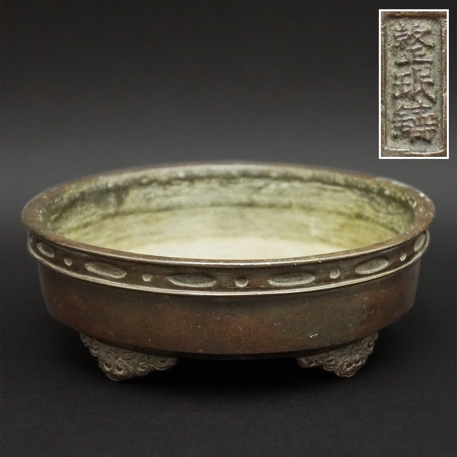 - 金工師 整珉鋳 銅製 香炉 時代物 村田整珉造 三足香炉 香櫨 茶道具 煎茶道具 時代 骨董 古美術品
