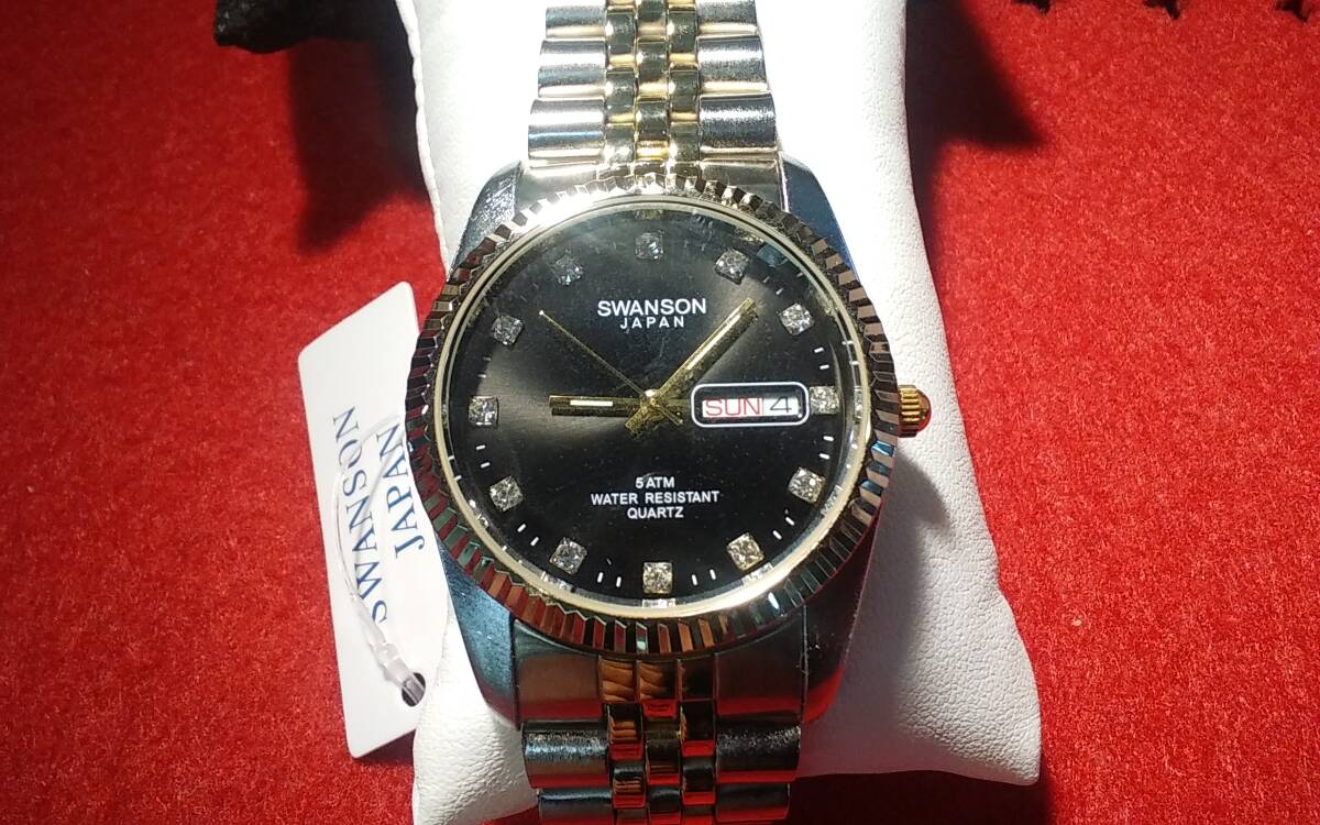 - 新品未使用 Swanson JAPAN メンズ ツートンカラー デイデイト ウォッチ ブラックダイヤル[文字盤] 簡易ケース付き