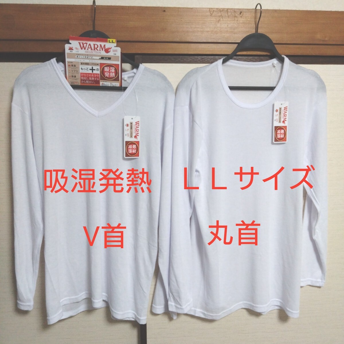 - ③メンズ 紳士 インナーウェア 吸湿発熱 保温 あったか LLサイズ 長袖 V首&丸首