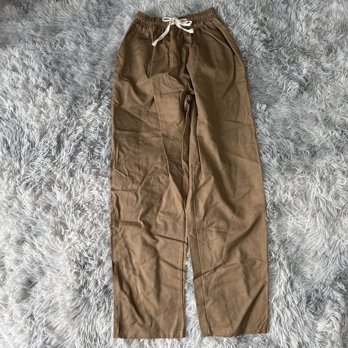 - Lopis ウエストギャザーリボン綿パンツキャメルXL☆美品42