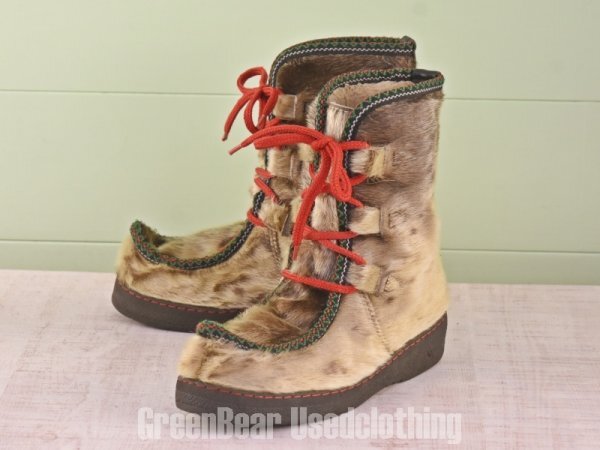 - D048 ビンテージ エスキモーブーツ アザラシ毛 レディース 40 25cm