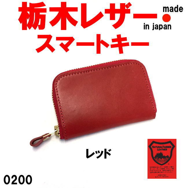 - レッド 栃木レザー 0200 Lien ラウンド スマート キーケース 日本製 本革 メンズ レディース