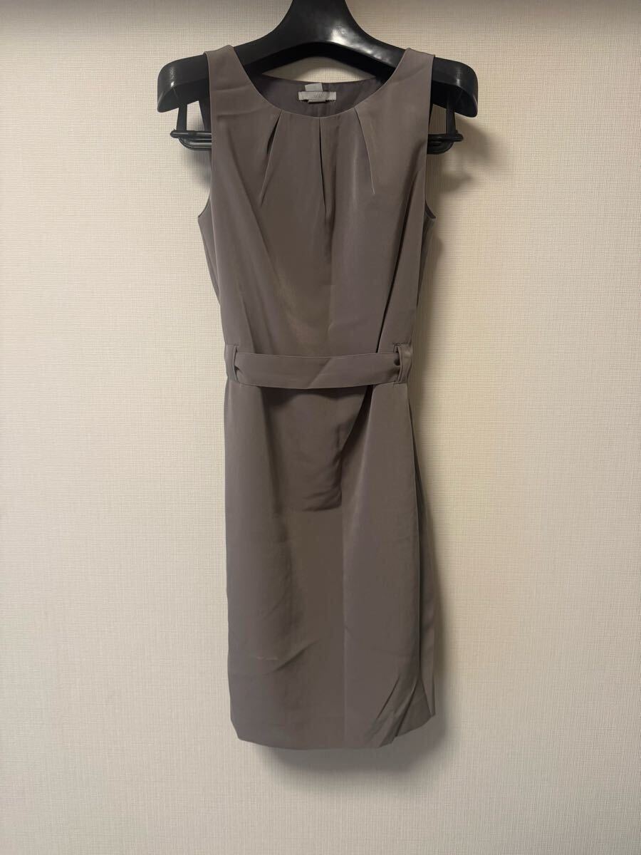- H&M 32 XS ワンピース ドレス グレー グレージュ ノースリーブ フォーマル 結婚式 ウエストリボン