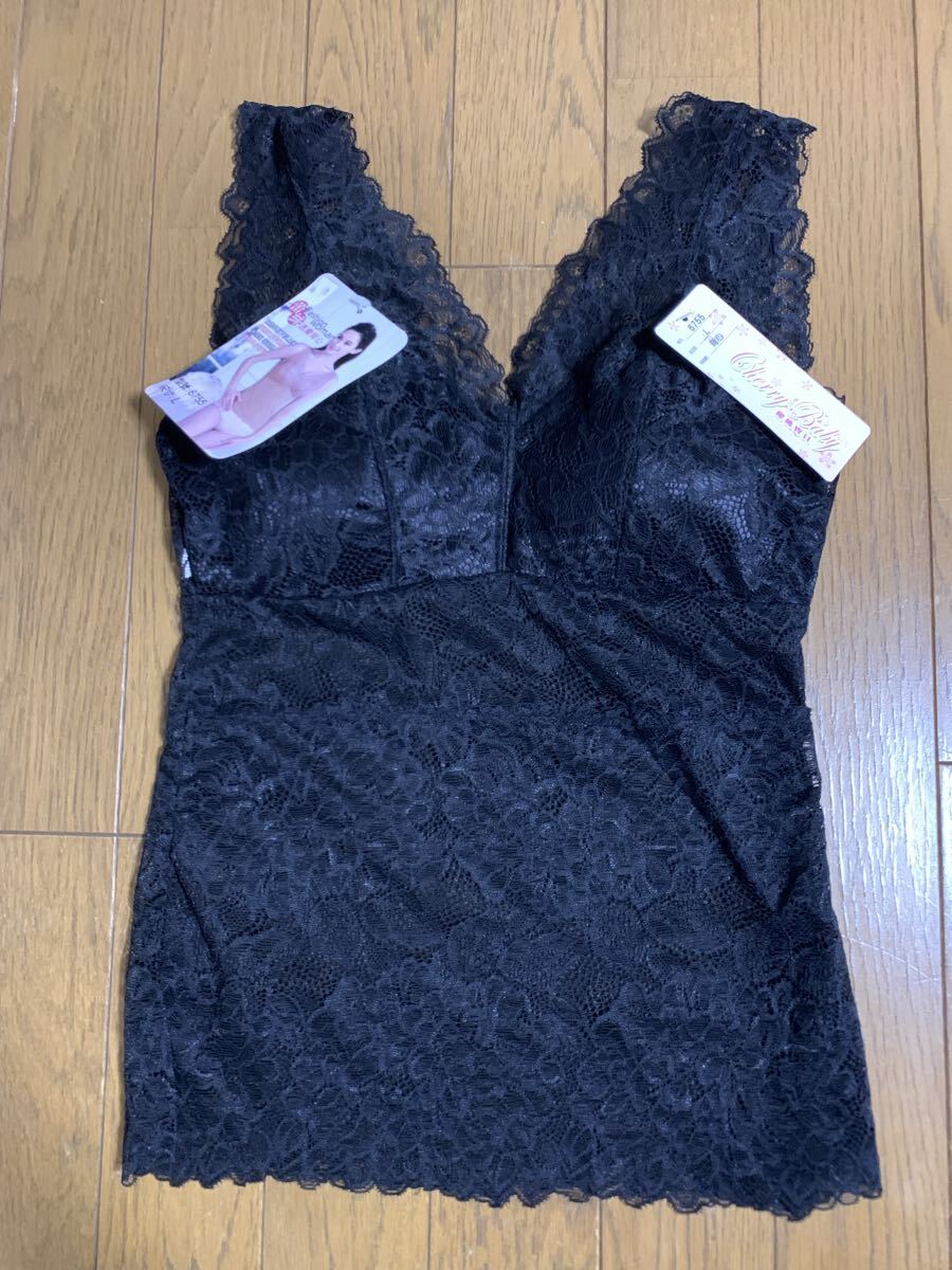 - 総レース パット入り タンクトップ インナー M〜Lサイズ エレガントデザイン ブラック キャミソール 下着 黒
