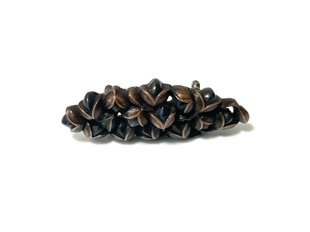 - 金工 ムクロジの実 帯留 素銅 赤銅象嵌 銀裏座 重さ9g 在銘 金工師 光友 特製桐箱入り(彫金、明治金工、前金具、帯留め)