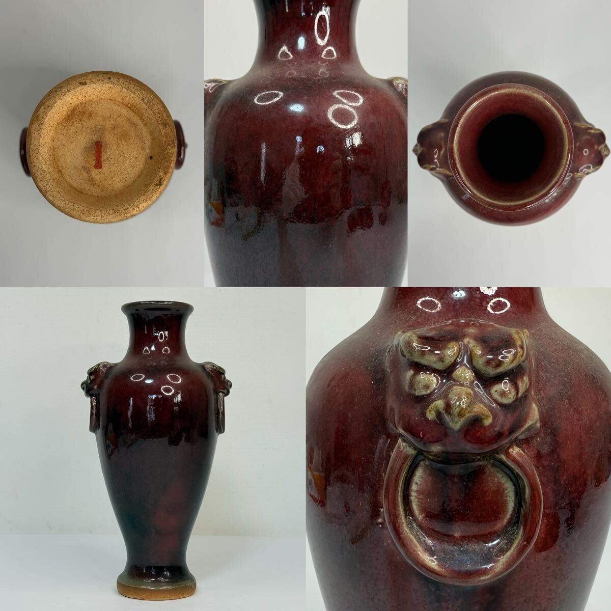 - XMF-中国古美術 時代物 花瓶 花器 花入 花生 色絵 窯変釉 獅耳付 唐物 陶磁器 中国古玩 骨董品