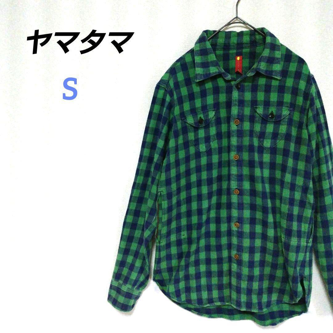 - ヤマタマ みつめ ネルシャツ チェック総柄 緑 長袖 フランネル コットン 綿 YAMATAMA グリーン メンズ レディース ロングスリーブ