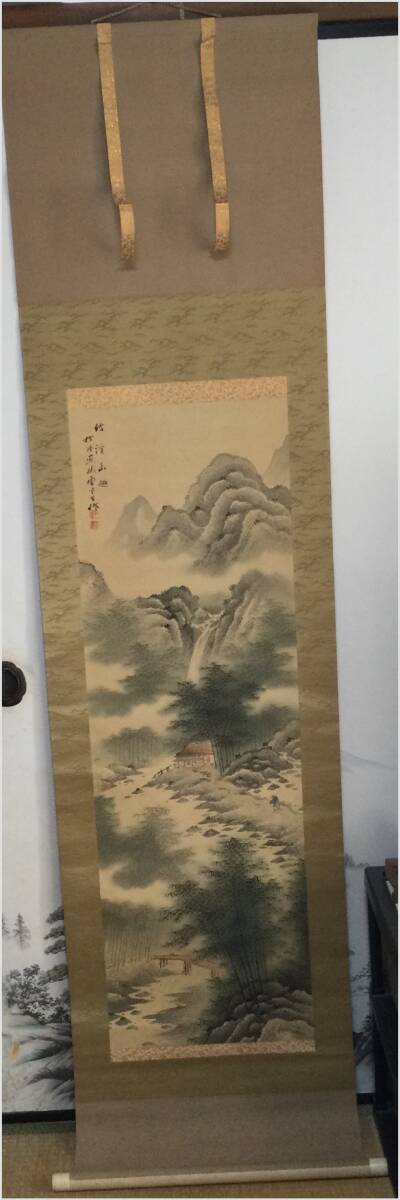 - *委託、レトロ軸物「竹林山水図」肉筆・画讃:銘。