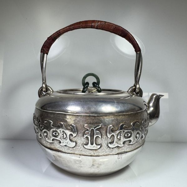 - 純銀製 蔵六 湯沸 貴石摘 銀瓶 鳴付 古美術品 純銀保証 湯沸 やかん