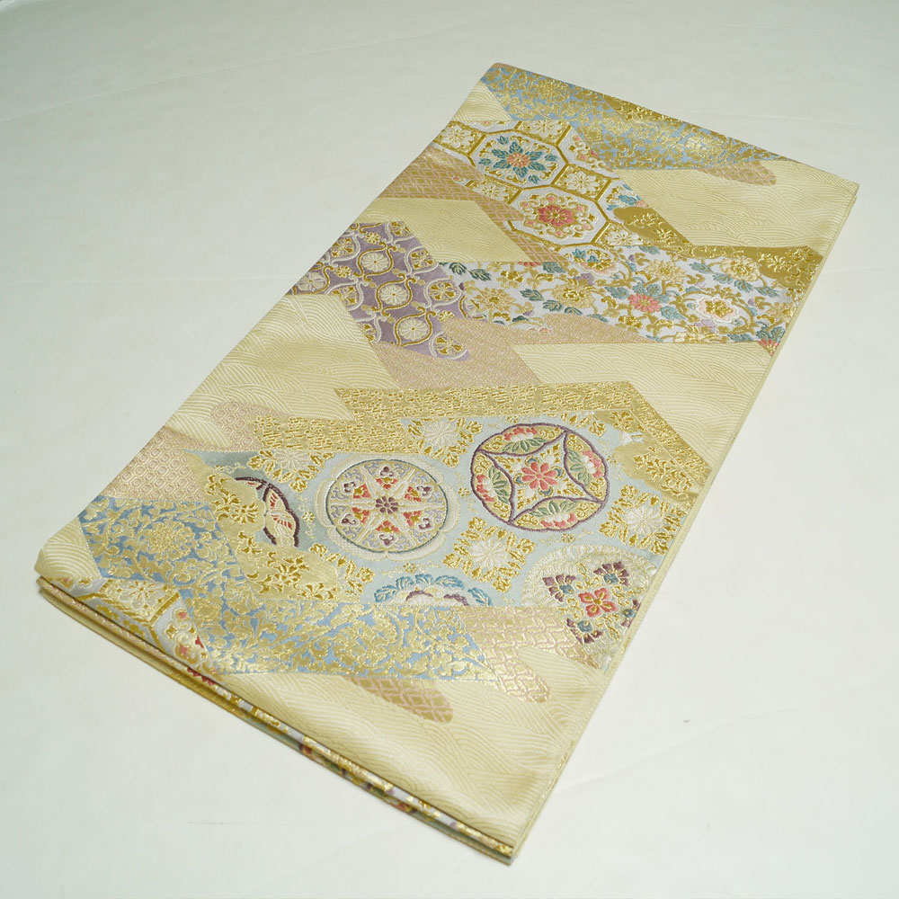 - 袋帯 松皮取寿宝文 きものやまと扱い 金糸 六通柄 唐織 正絹 中古 リサイクル着物 帯 フォーマル 袋帯 着物 きもの天陽