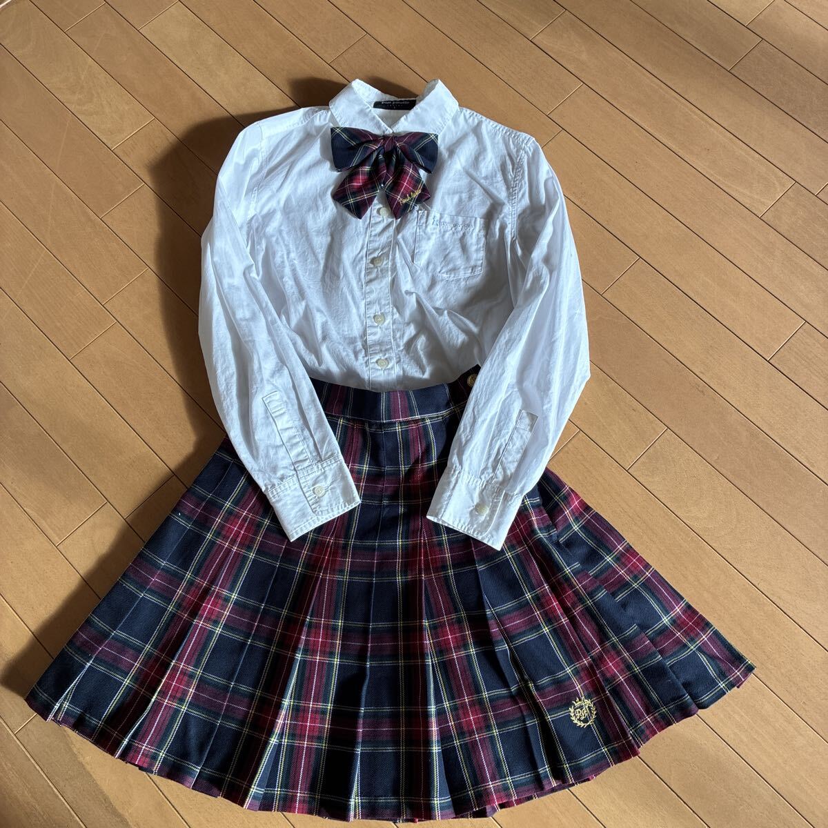 > ナルミヤ ポンポネット L 150 160 ブラウスプリーツスカートセット 制服風 面接 卒業式 チェックスカート