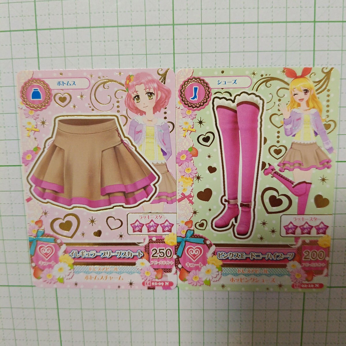 - アイカツ コーデ データカードダス カード イレギュラープリーツスカート 14 02-09 N ピンクスエードニーハイブーツ 14 02-10 N