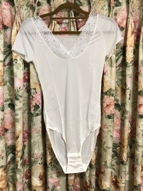 > ★未着用 M 223801 超破格値! 在庫処分特売! ニット地部分 絹シルク100% レース付 ボディブリファー 半袖 Mサイズ 白生成系