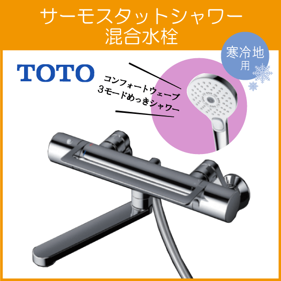 - 壁付サーモスタット混合栓 サーモシャワー アーチハンドル コンフォートウェーブ 3モード 寒冷地仕様 TBV03417ZA TOTO GGシリーズ