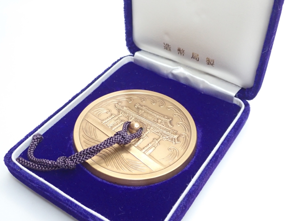 - Z953 文鎮 沖縄 守禮之邦 守礼の門 昭和47年 沖縄復帰記念 造幣局製 レトロ メダル