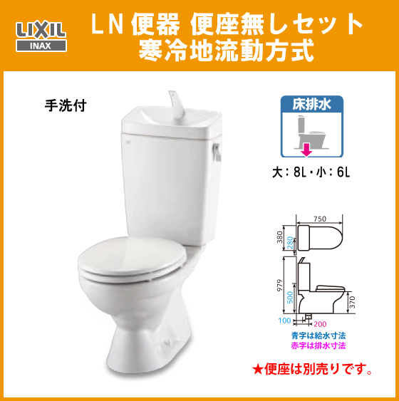 - 便器 LN便器(手洗付) 寒冷地 流動方式 C-180S,DT-4840W リクシル イナックス LIXIL INAX ★