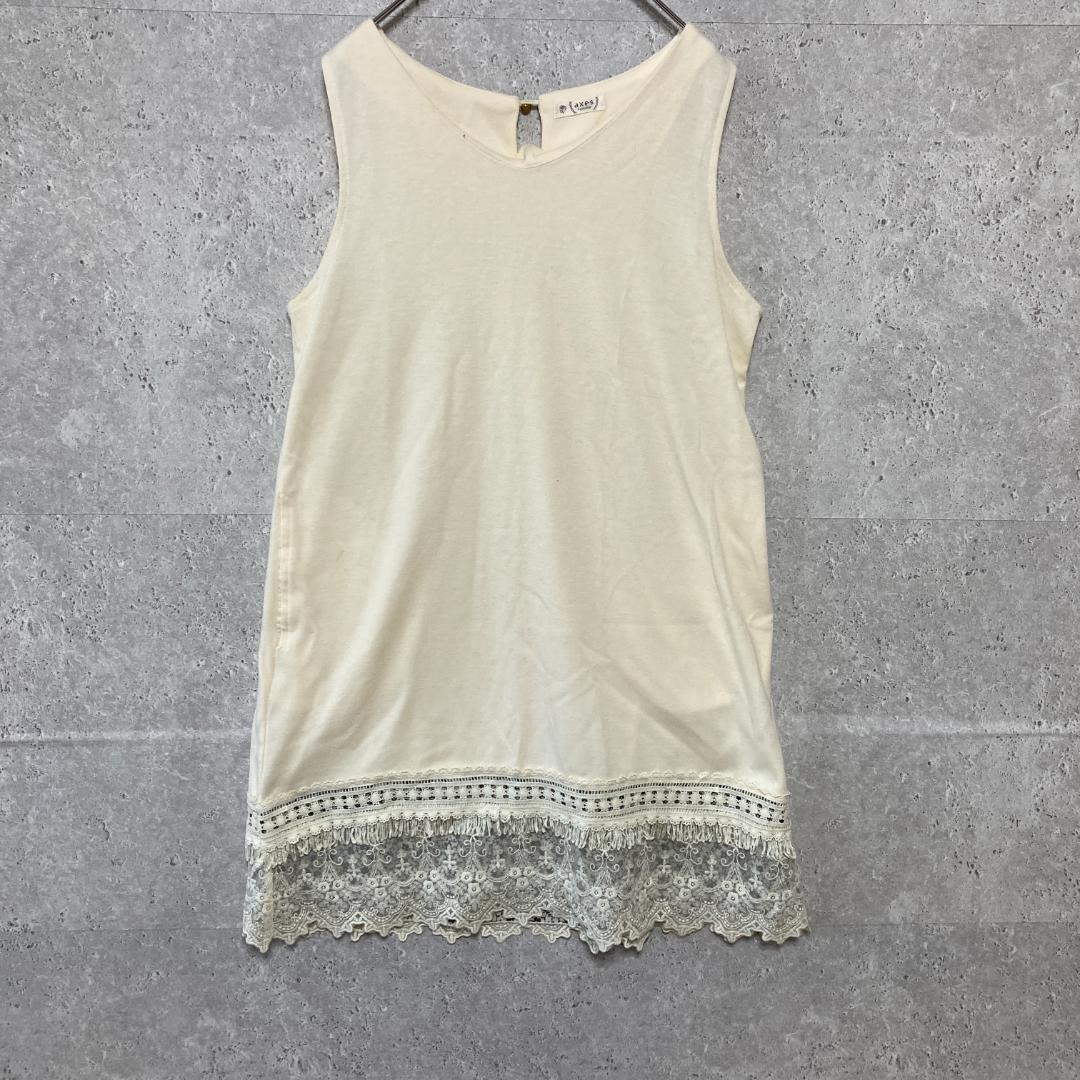 > アクシーズファム(M)ノースリーブレースチュニック*ポケット*伸縮性*透け感*白