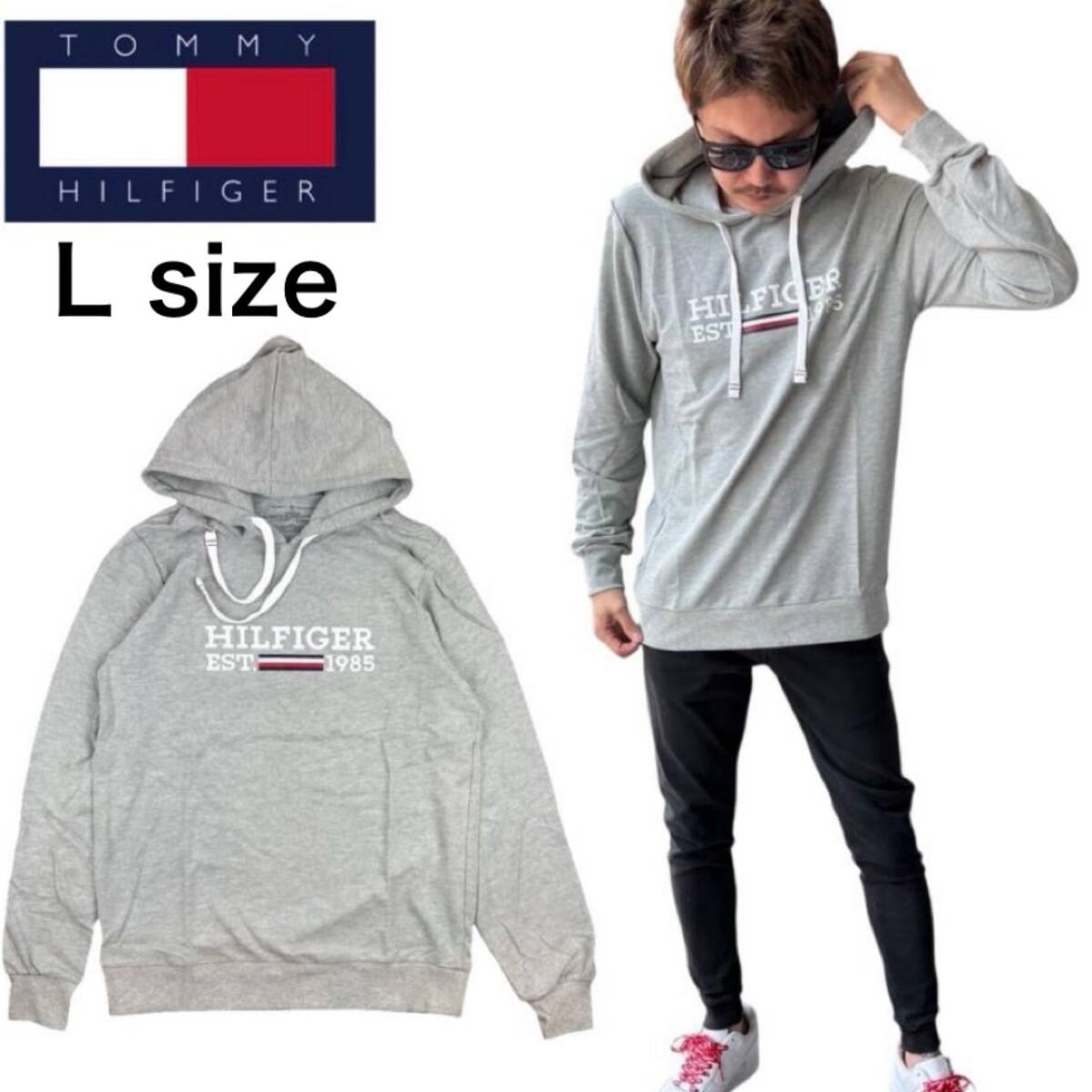 > トミーヒルフィガー トップス パーカー 薄手 長袖 09T4505 グレー Lサイズ メンズ レディース プリントロゴ 速乾 TOMMY HILFIGER 新品