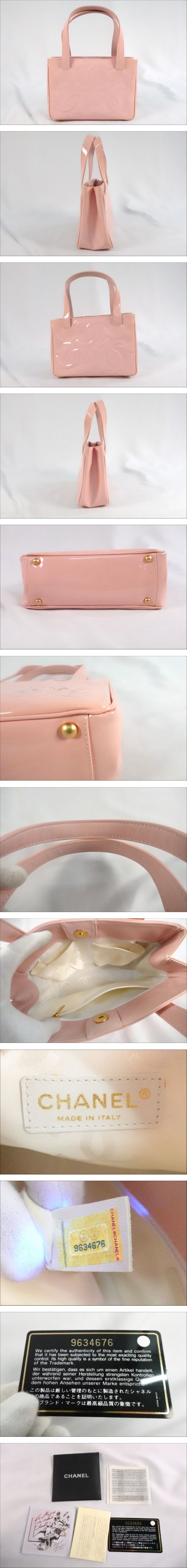 - CHANEL シャネル ココマーク エナメル バッグ トリプル ハンドバッグ ロゴ ギャランティーカード付 ブランド ピンク系
