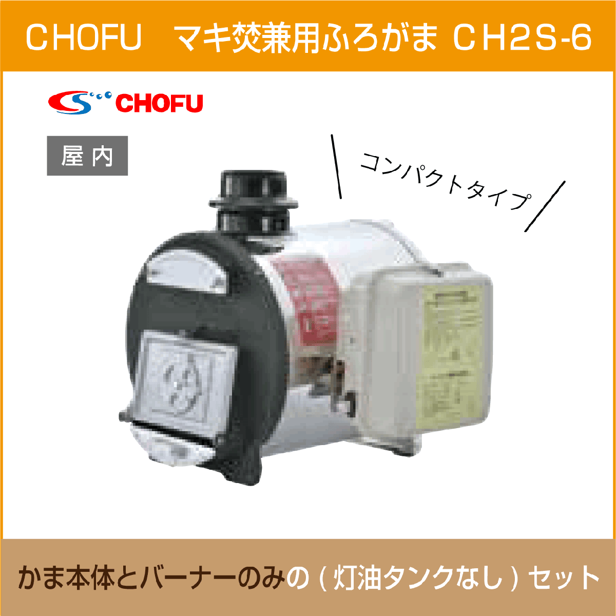> マキ焚兼用ふろがま 焼却兼用釜 CH2S-6 コンパクトタイプ 本体・バーナー2点セット(灯油タンクなし) CHOFU 長府製作所