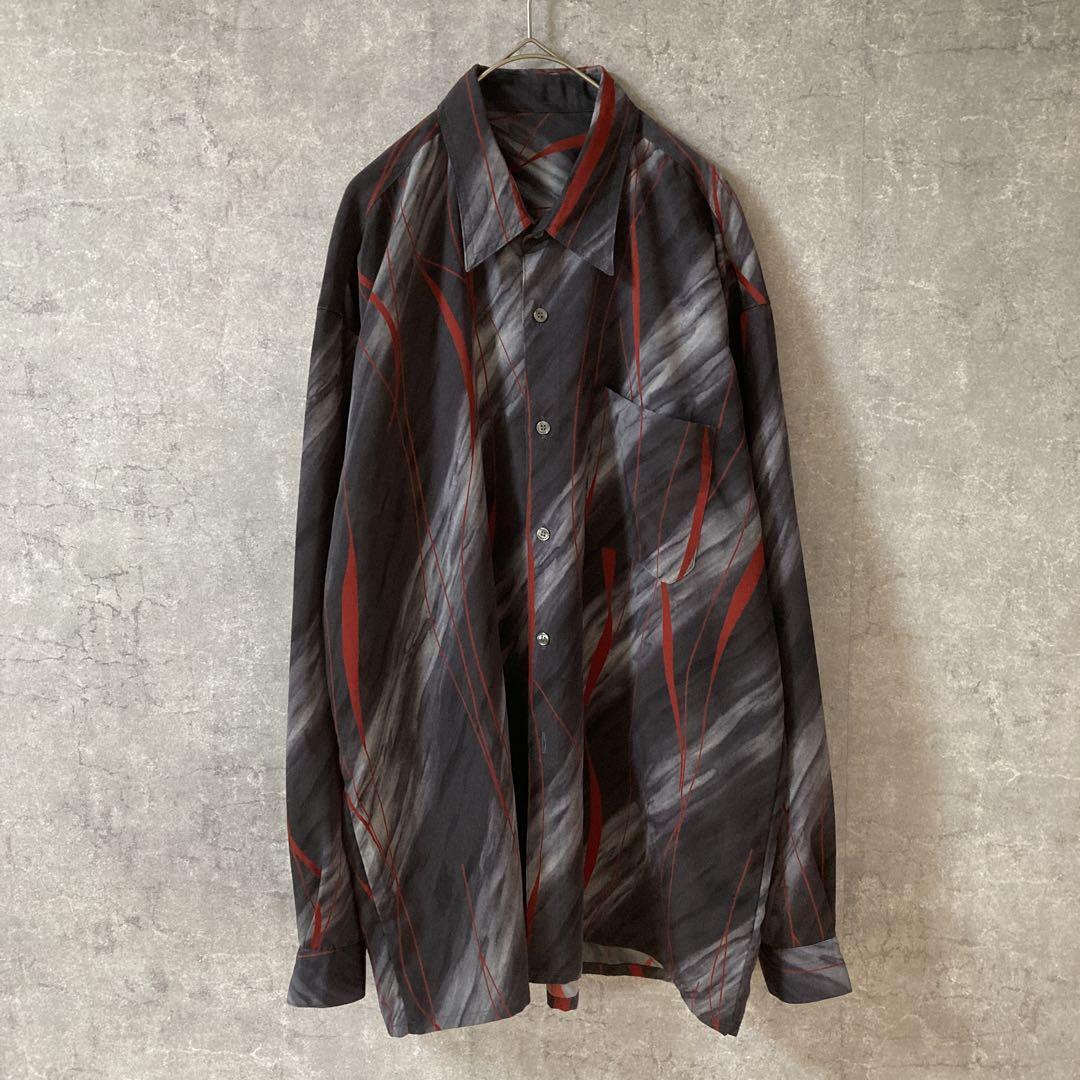 - デザインシャツ 総柄 長袖 ビッグシルエット モード 赤 黒 グレーLからXL程