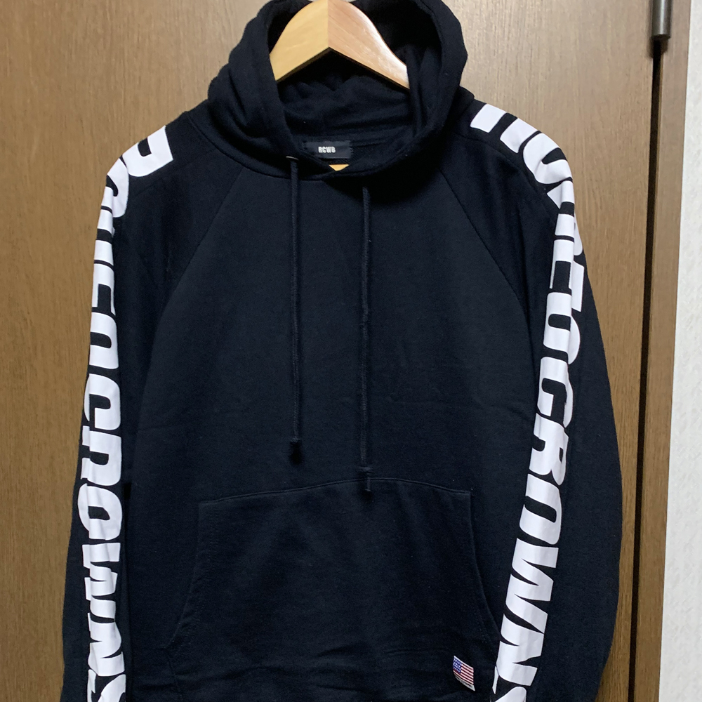 > F【RODEO CROWNS|パーカー】ロデオクラウン ブラック 袖フルプリント フーディー スウェット