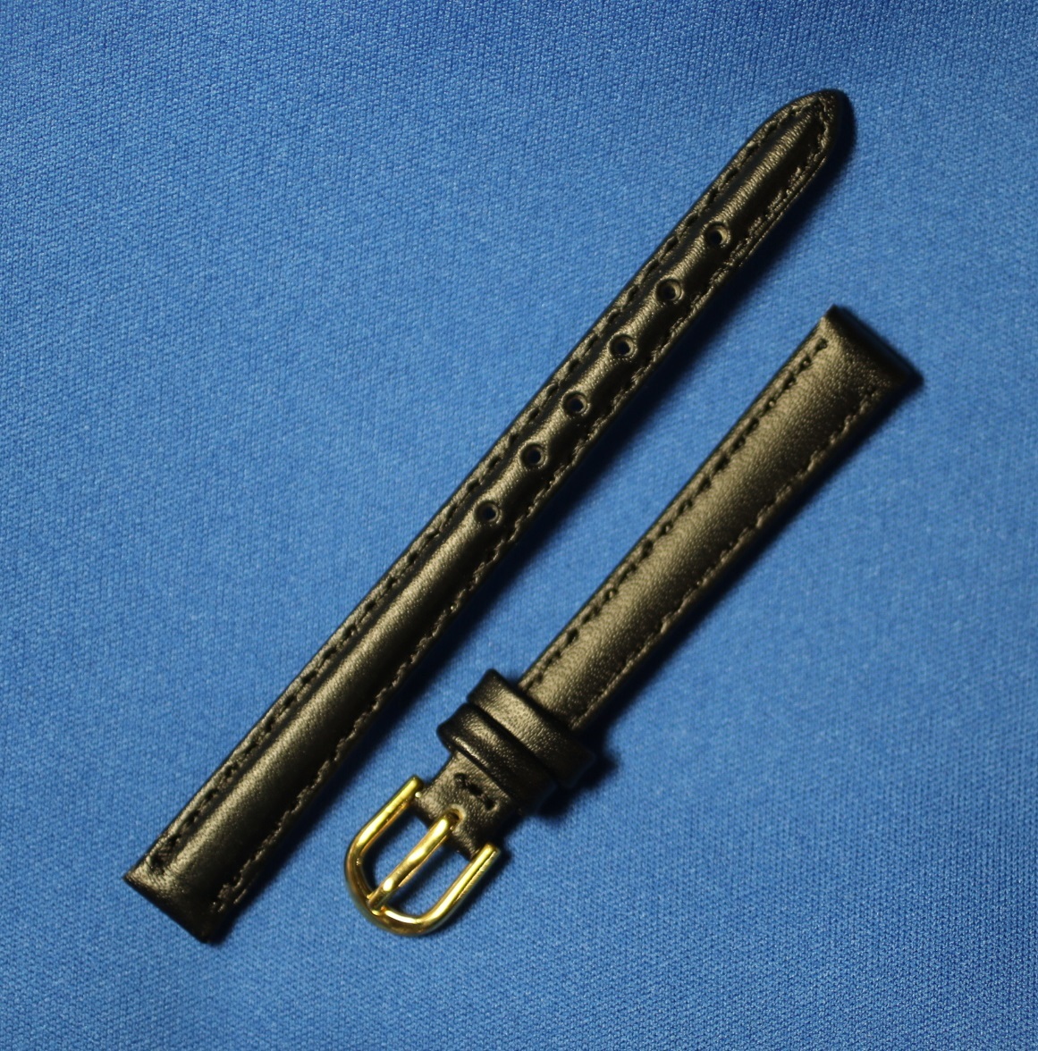 - 10㎜ 黒 ブラック カーフ ステッチ入 GP・金色尾錠 革ベルト 新品未使用