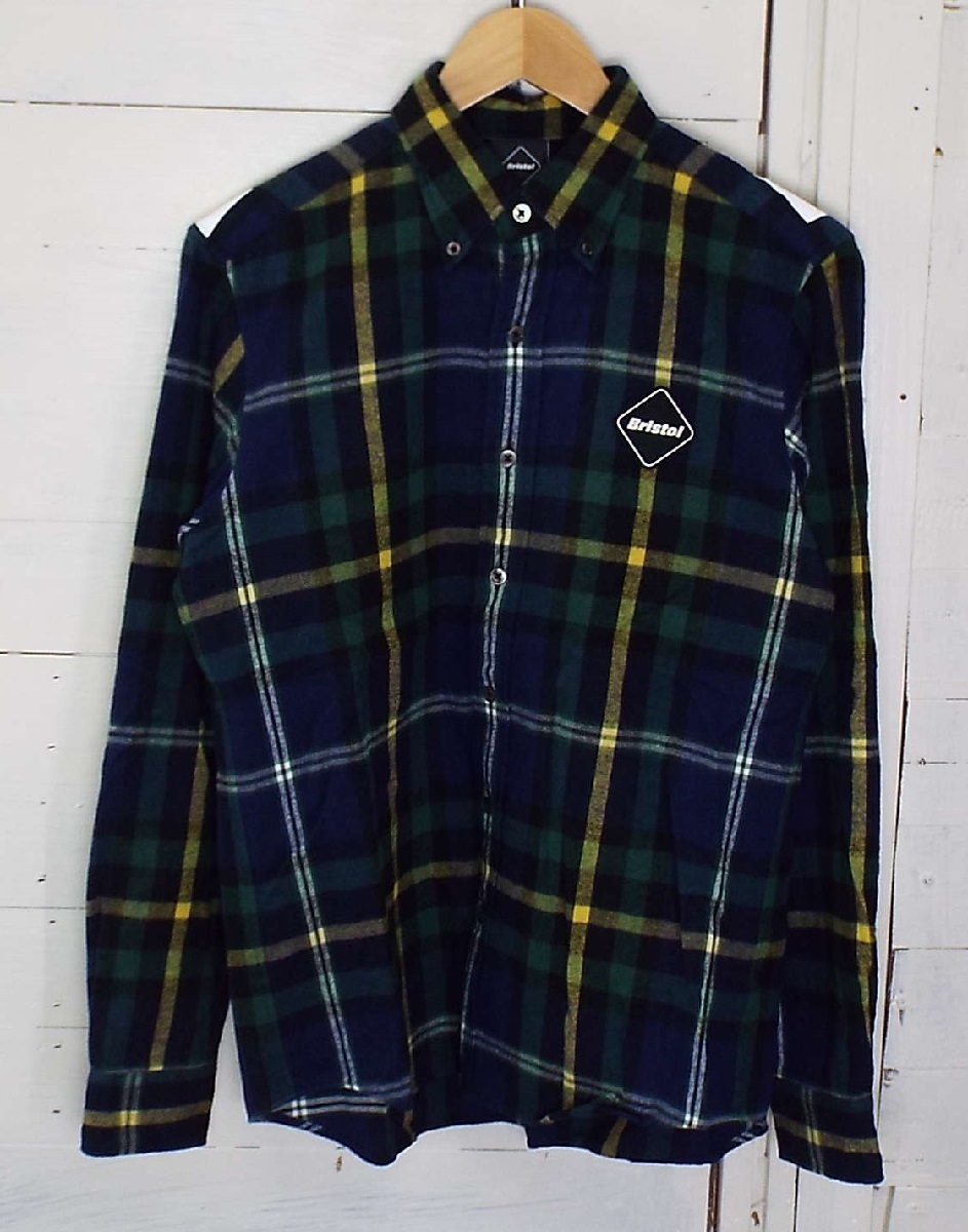 > T2725〇F.C.R.B./F.C.Real Bristol(エフシーレアルブリストル)ネルシャツ 長袖 チェック/胸ロゴ/グリーン FCRB-192073 Sサイズ