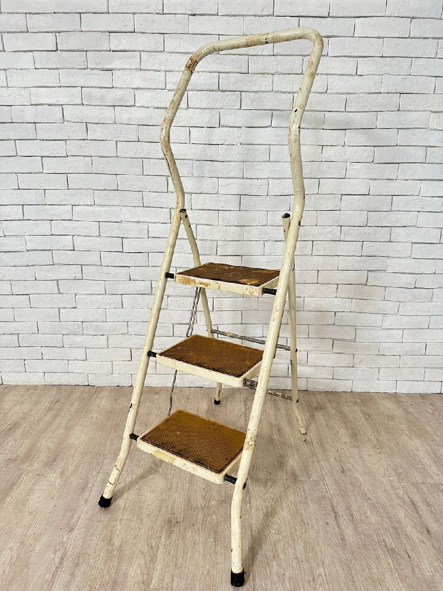 > 4493 イタリア アンティーク 脚立 ラダー オブジェ 飾り棚 インダストリアル 撮影 店舗什器 高さ135cm 幅71cm 奥行き50cm bss