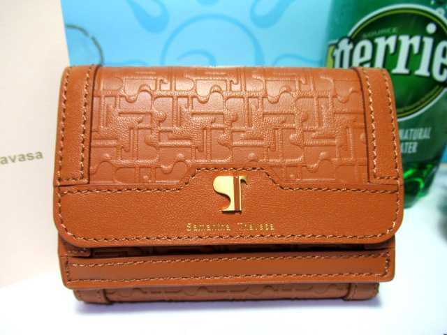 - 送料無料 52%引 サマンサタバサ ST ロゴ エンブレム付 型押 牛革 ミニ財布 三つ折り財布 折財布 キャメル 新品 証明書付 ユニセックス