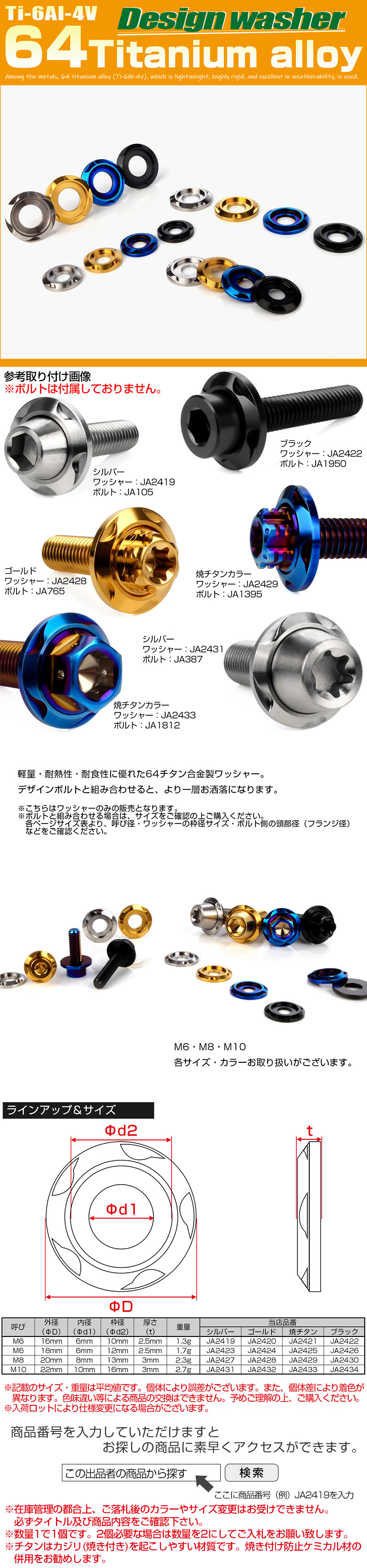 - チタンワッシャー M8 外径20mm ボルト座面枠付き ボルトリング フジツボ ゴールド JA2428