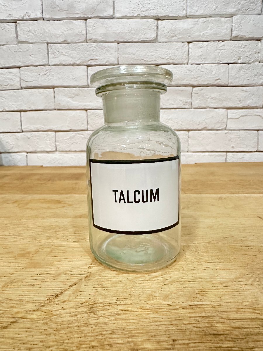 クリアガラスに、ブラックカラーでTALCUMの文字がデザインされた商品です。