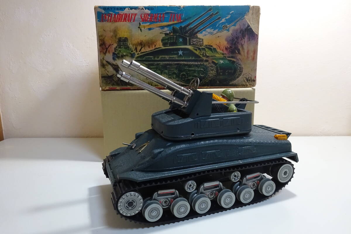 - 動画あり!!★米澤玩具(ヨネザワ) アンチ エアクラフト M4シャーマンタンク★ブリキ戦車 昭和レトロ 当時物 ビンテージ アンティーク