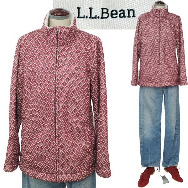 > ★【希少 レディース 国内正規品】LLBEAN LLビーン(L.L.) 296574 フルジップ ノルディック柄 フリース ジャケット 長袖 M パープル系
