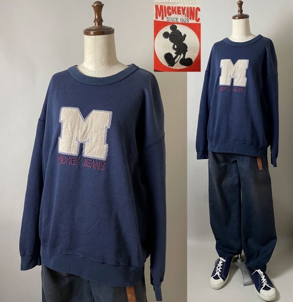 > 【90年代 名作 ビンテージ デザイン◎】90s MICKEY , INC MICKEY MOUSE JEANS ミッキーマウス アップリケ ロゴ スウェット トレーナー M