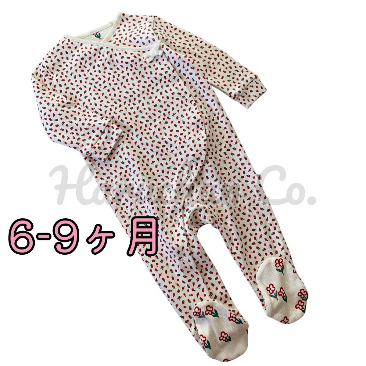 - ●未使用●6-9ヶ月 レッド小花柄 カシュクール カバーオール