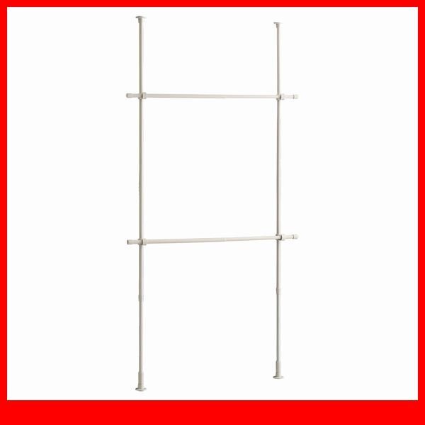 > ハンガーラック★新品/シンプル つっぱりハンガーラック 2段 幅70~120cm 高さ調整可能/ビス止め不要 賃貸OK/ホワイト/a3