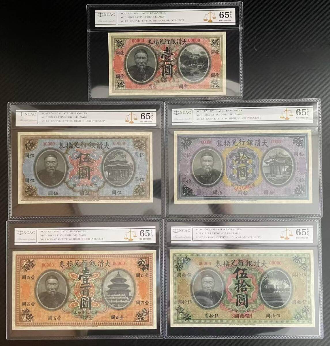 - 中国紙幣・大清銀行兌換券・1908年発行 5種揃・中国清代の政治家李鴻章肖像・複製品