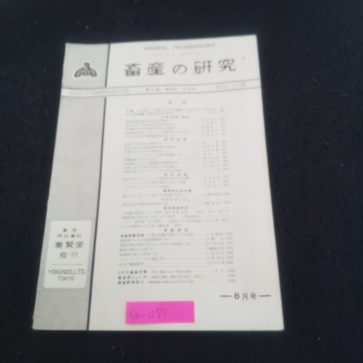 > Cb-077/畜産の研究 1957年8月号 vol.11 No.8 牛乳生産費の構造とその性格 対島の和牛の家畜改良的考察/L3/71006