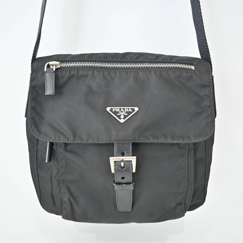 > PRADA プラダ ロゴプレート ナイロン/レザ― ショルダーバッグ BT8994 ブラック M07-k062