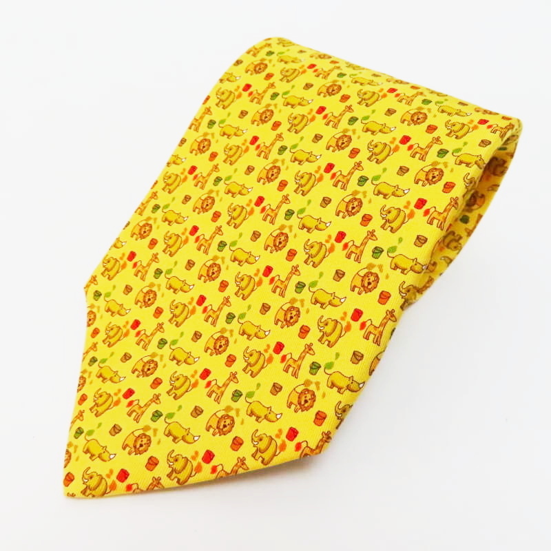 > T03-k071 Salvatore Ferragamo サルヴァトーレフェラガモ ライオン/アニマル柄 シルク ネクタイ イエロー