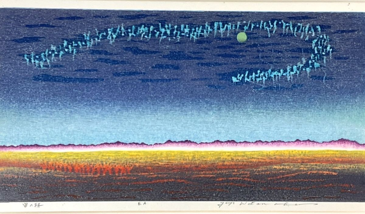 真作■木版画■渡辺裕司■『宙の林』■ORIGINAL WOODBLOCK PRINT・希少■額付絵画