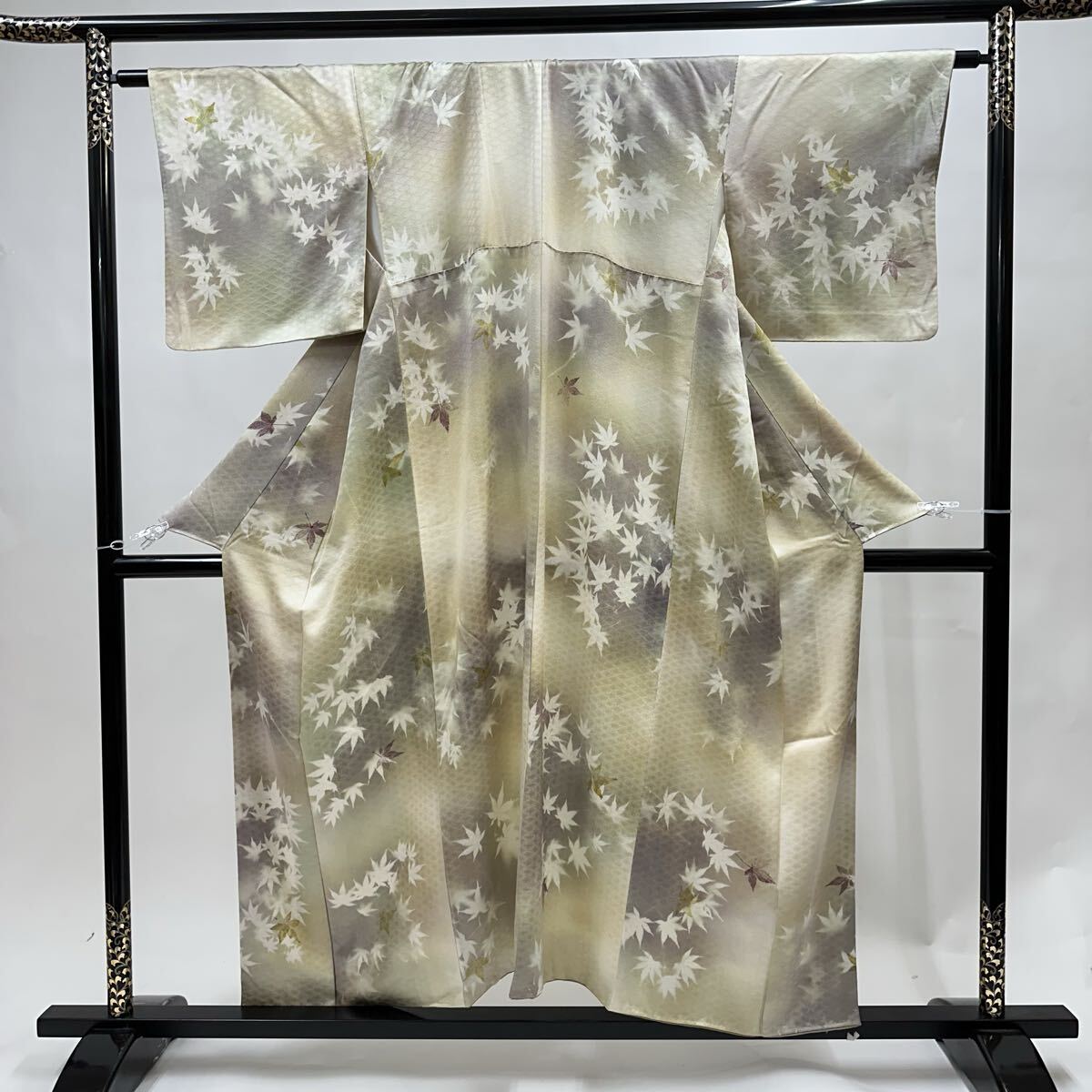 - 【七福】c909 正絹 小紋 地模様 暗文 暈し染 紅葉 袷 着物 仕立て上がり 逸品 身丈 約150.5cm 裄 約62cm