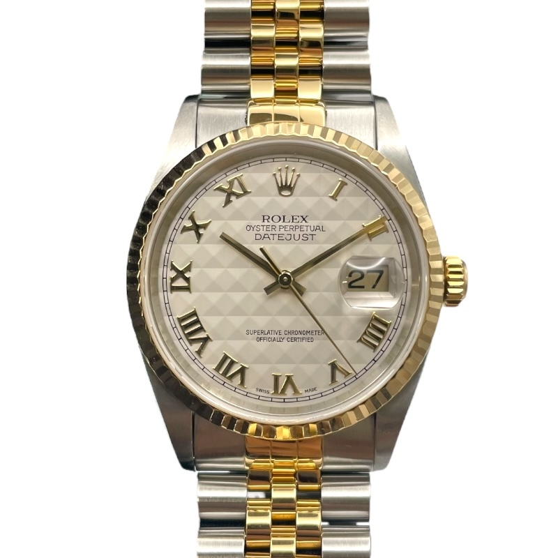 - ロレックス ROLEX デイトジャスト36 ピラミッド 16233 ホワイト K18YG/SS 腕時計 メンズ 中古