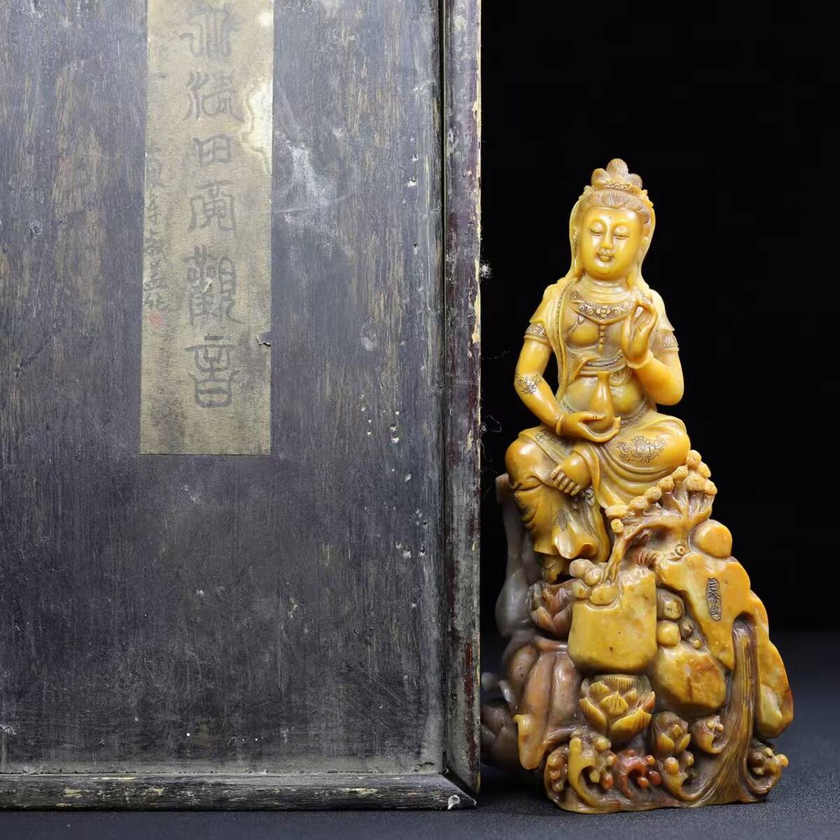 - 旧蔵 寿山石彫 觀音 仏像 古擺件 古置物 中国古玩 骨董品 時代物 稀少唐物