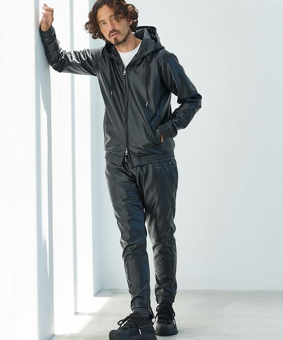 - 1PIU1UGUALE3 RELAX ウノピゥウノウグァーレトレ リラックス メンズ ブランド akm 皮革 ジム パーカ ジャージ フェイク レザー 2L 3L XXL