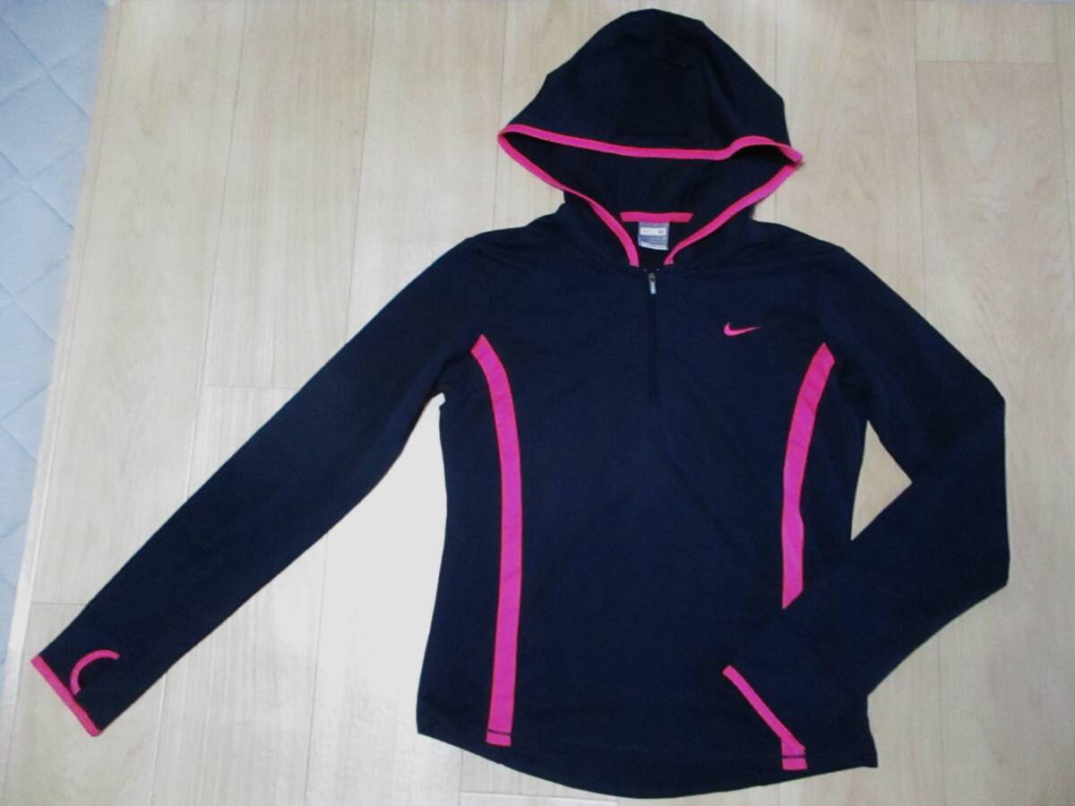 - ナイキFIT DRI・フード付き長袖Tシャツ・紺×ピンク色・サイズM