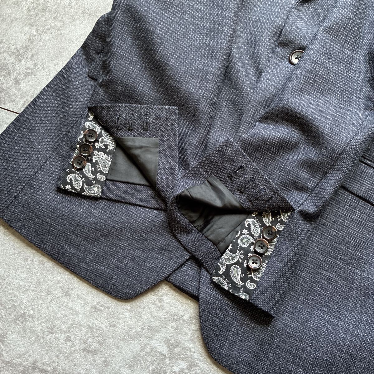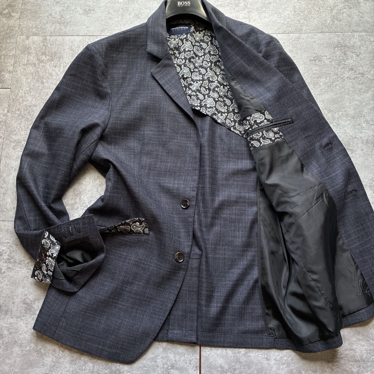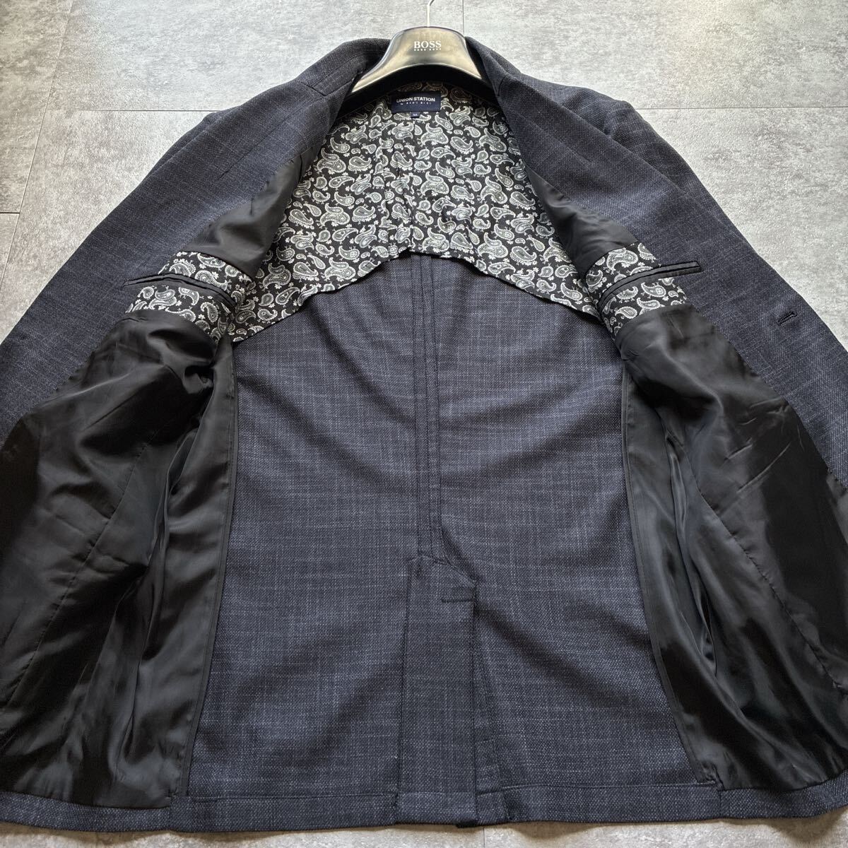 > 【極美品・LL相当】UNION STATION MEN'S BIGI テーラードジャケット ネイビー ペイズリー裏地 本切羽 メンズ 総柄 滑らかな肌触り XL 紺