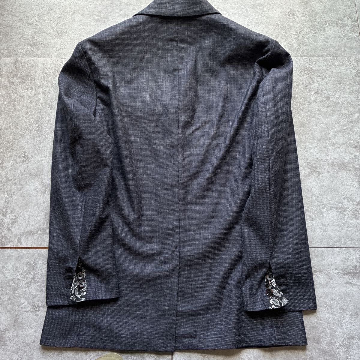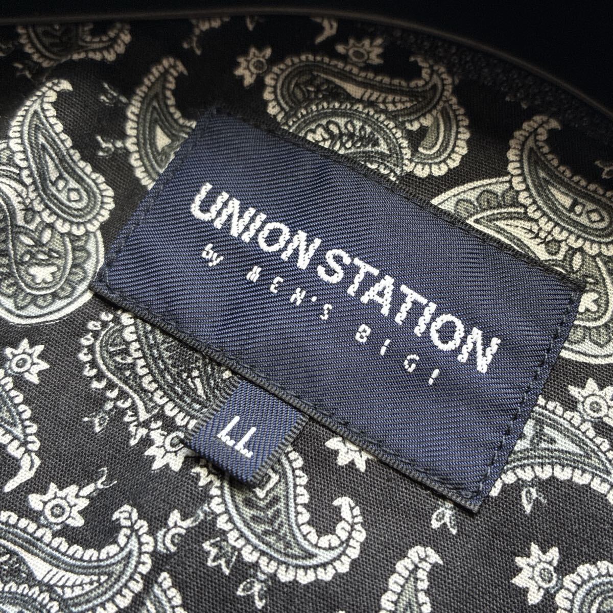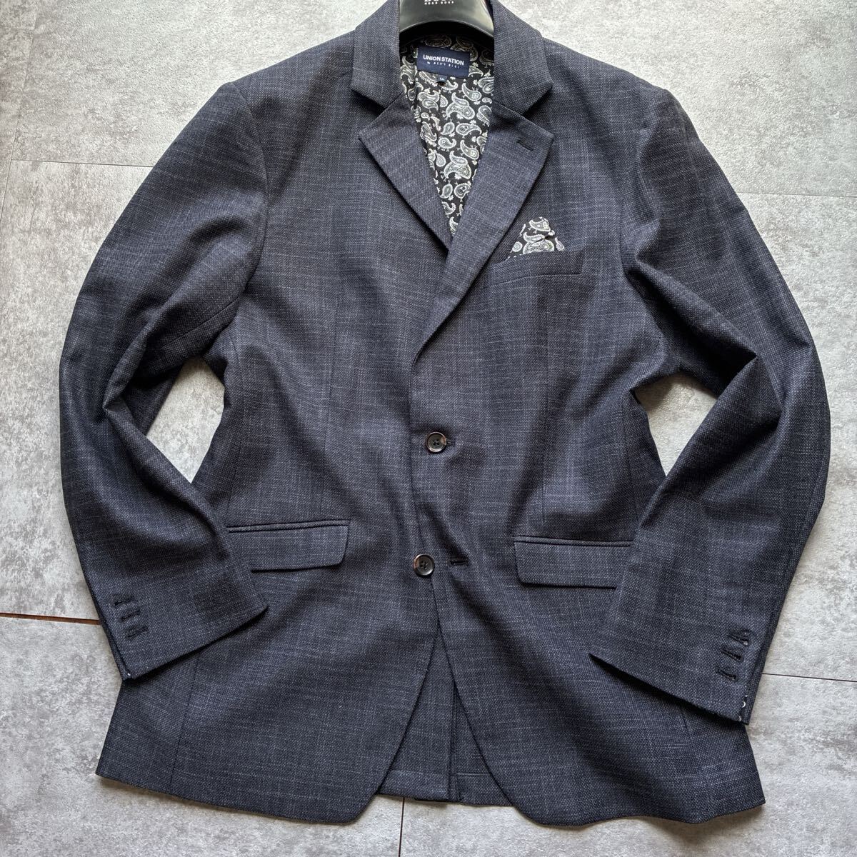 > 【極美品・LL相当】UNION STATION MEN'S BIGI テーラードジャケット ネイビー ペイズリー裏地 本切羽 メンズ 総柄 滑らかな肌触り XL 紺